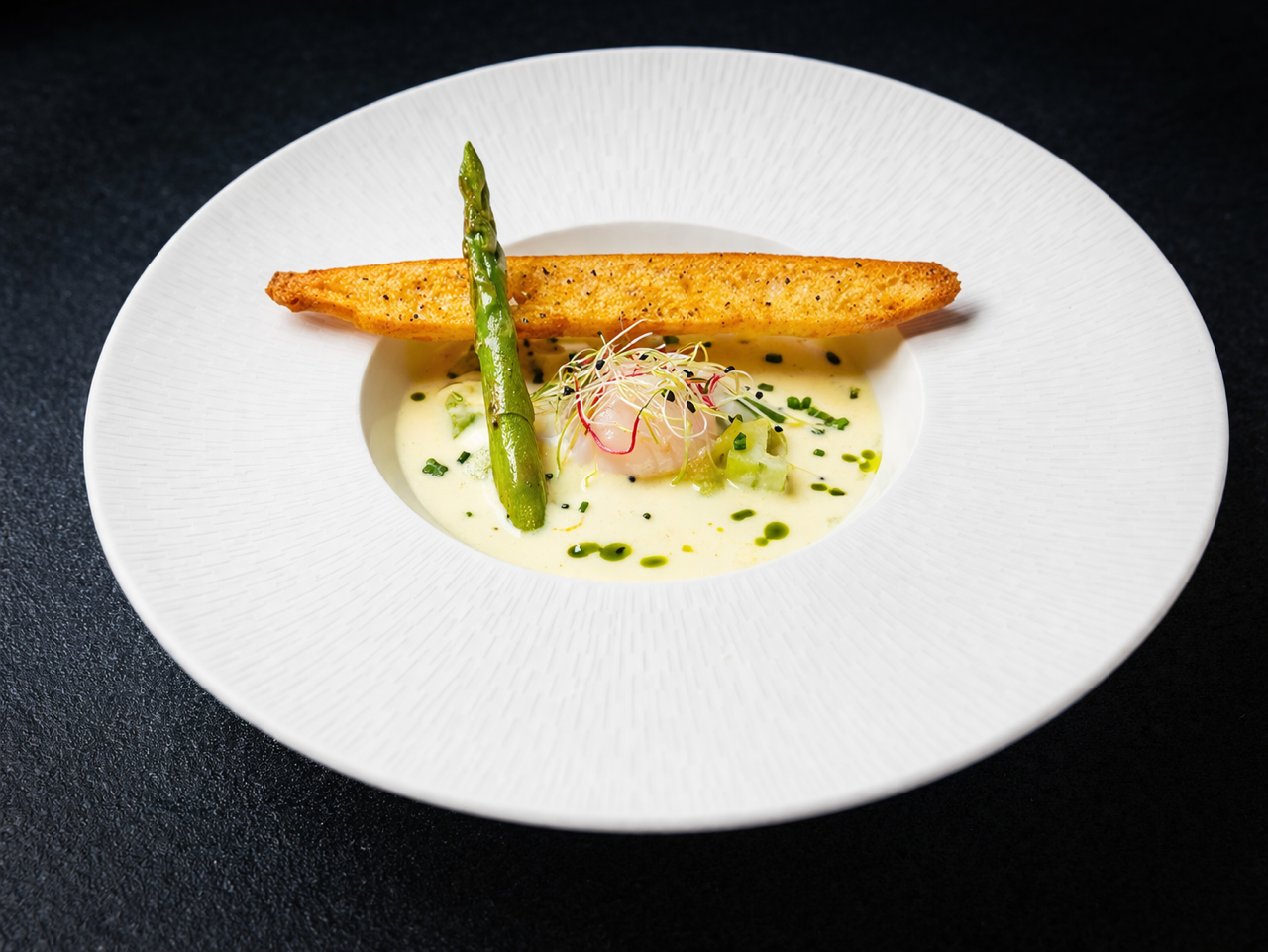 - A l’échalote confite, fleurs de Tête de Moines (fromage suisse)